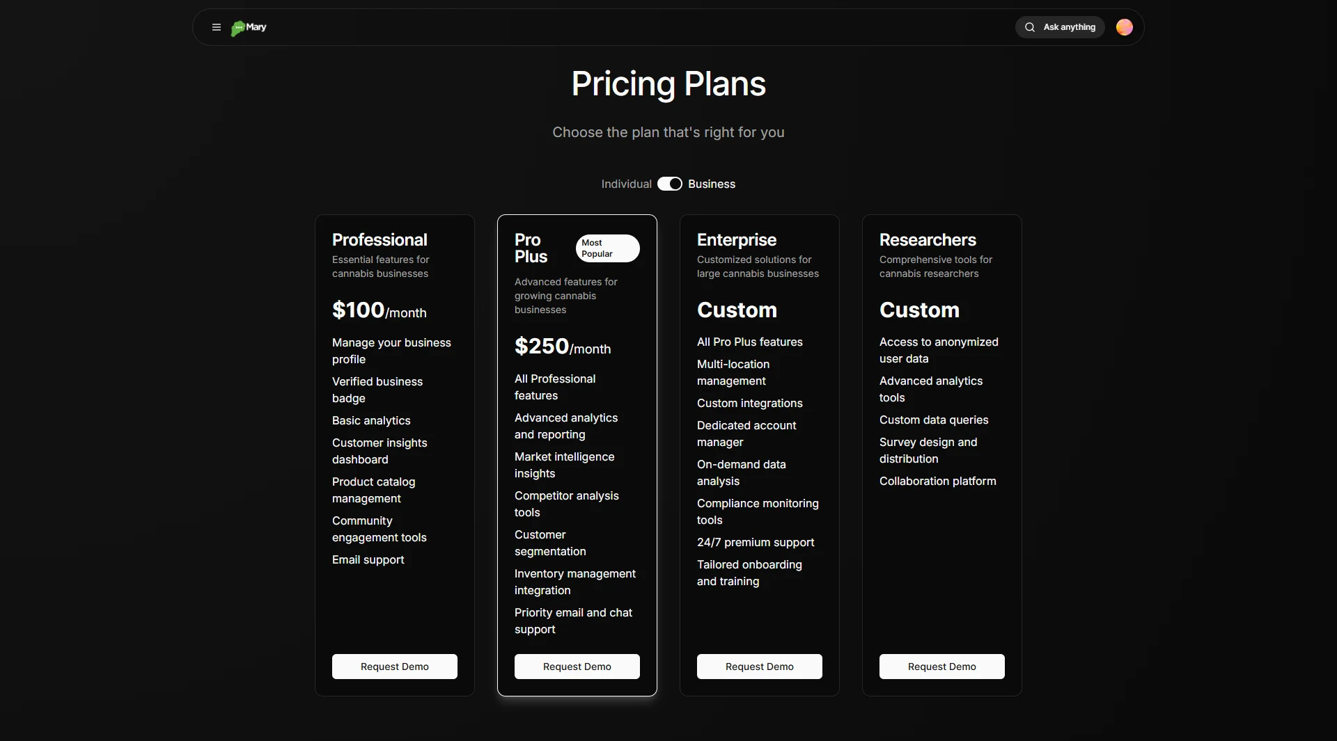 MaryApp is ideal for startups, e-commerce businesses, retailers, researchers, and enterprises looking for AI-powered analytics and market intelligence. It supports multiple subscription plans including Professional, Pro Plus, Enterprise, and Researcher, making it suitable for businesses of all sizes.